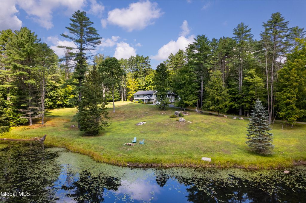 A rare chance to own your own Adirondack haven on 8.6 private acres with a serene pond! This 5-bedroom, 3-bath home offers a spacious, flexible layout with multiple gathering spaces, perfect for hosting or relaxing. Featuring a spacious kitchen with island and eating nook, a large formal dining room, and bright living room with wall of windows to soak up the sunlight and scenic views of the property. The home is freshly painted throughout with new engineered flooring and loads of recent improvements including a new roof, egress window from fifth bedroom, new electrical panel, new heating ventilation and attic fan, underground electricity to the pool area, and 2 AC splits on the lower level. The exterior features a large deck with multiple gathering areas, a built-in hot tub, and large pool. Tucked in the Adirondack mountains yet only minutes from Lake George and Gore Mountain, this gorgeous property offers tranquility and convenience. Option for turn-key purchase.